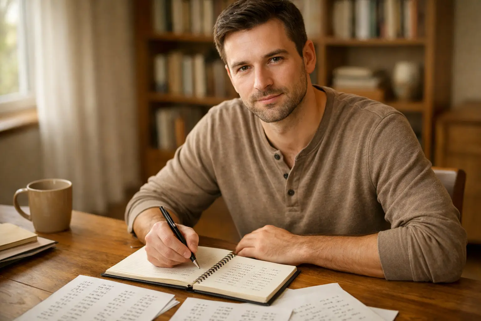 Persona annota percentuali e calcoli su blocco note